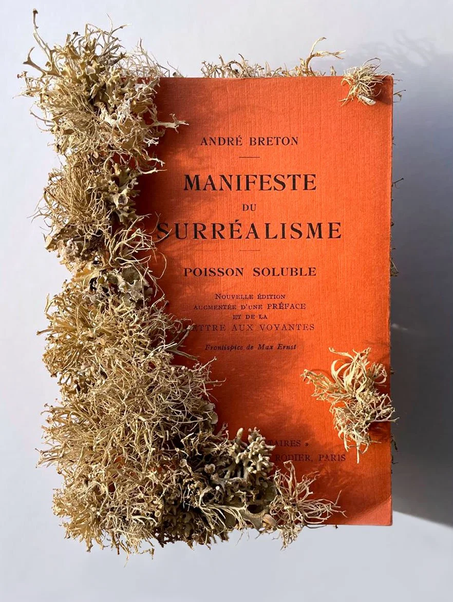 Materials: Steel, hardwood, acrylic paint, MP3 & MP4 players, Giclee prints, found postcards, found books, coin, lichen, soil